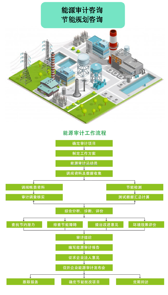 为工业企业、公共建筑、 公共机构、交通运输行业提供能源审计服务,并在此基础上编制节能规划报告